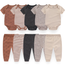 Introducing our pack of 5 pcs cotton sleeve romper and pants set! Made from soft and breathable cotton, this set is perfect for keeping your little one comfortable and stylish. With five different colors and patterns, you can mix and match to create endless outfit options. Get yours today and dress your baby in the best!