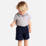 Transform you little one into a charming fashionista with our Peter Pan Collar Shirt Navy Blue Shorts Set. Adorned with a classic Peter Pan collar and paired with stylish navy blue shorts, this set is perfect for any occasion especially on Summer. Make them stand out in style and comfort, all while turning heads.