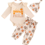 This adorable pumpkin set includes a romper, pants, headband, and hat. Made with soft, comfortable fabric, it's perfect for any baby's Thanksgiving celebration. The set features a cute pumpkin design, adding a festive touch to your baby girl's wardrobe. Get ready for the cutest Thanksgiving photos!
