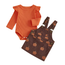 Get your baby girl's ready for fall with our Ruby Romper and Pumpkin Printed Overall Skirt Set! Made with soft and comfortable fabric, this set includes a versatile romper and an adorable pumpkin-printed overall skirt for a charming and stylish look baby. Perfect for everyday wear or special occasions like The Thanksgiving.