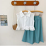 Elevate your child's wardrobe with our White Lapel Sleeveless Blouse & Wide-leg Pants Set. Made with high-quality materials, this set offers a stylish and comfortable option for any occasion. Featuring a chic lapel design, this blouse pairs perfectly with the wide-leg pants for a trendy and modern look.