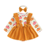 This Reese Pumpkin Printed Jumpsuit Romper and Headband is the perfect fall outfit for your baby girl. Made with soft and comfortable fabric, it features a cute pumpkin print that is perfect for the season. The included headband adds a touch of whimsy, making your baby stand out in style.