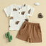 Introducing our Baby boy Toddler Cow Print Shirt Shorts Set, perfect for summer days. Made with soft and breathable fabric, this set is comfortable and stylish. Featuring a trendy cow print, your little one will stand out in the cutest way possible. Get yours now for a cool and playful look!