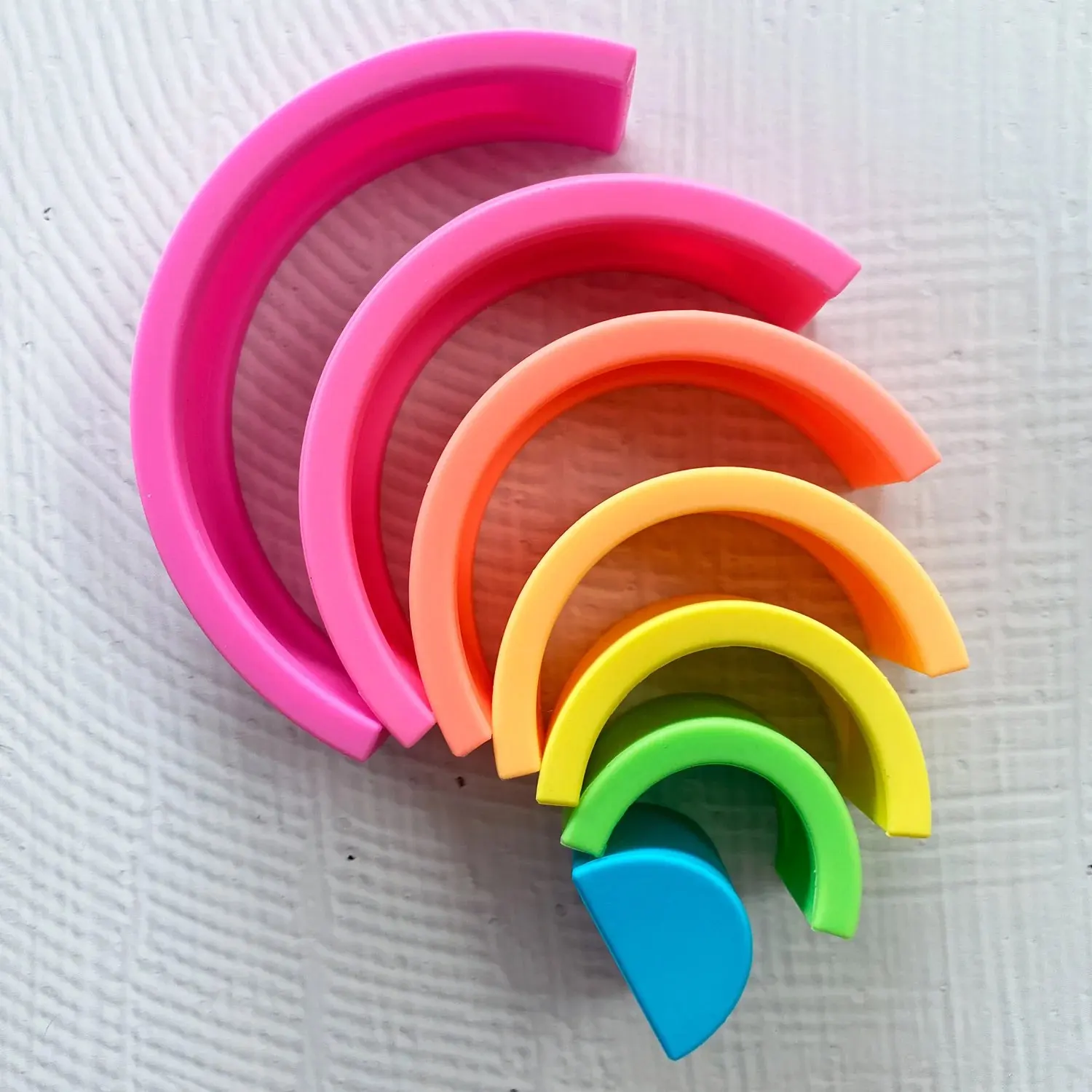 This Rainbow Silicone Stacking Toy is perfect for developing your little one's hand-eye coordination and fine motor skills. Made of durable, non-toxic silicone, it has a fun rainbow of colors that will spark your child's imagination and keep them engaged. With its easy-to-grasp shape and lightweight design, it's the perfect family friendly stacking toy.